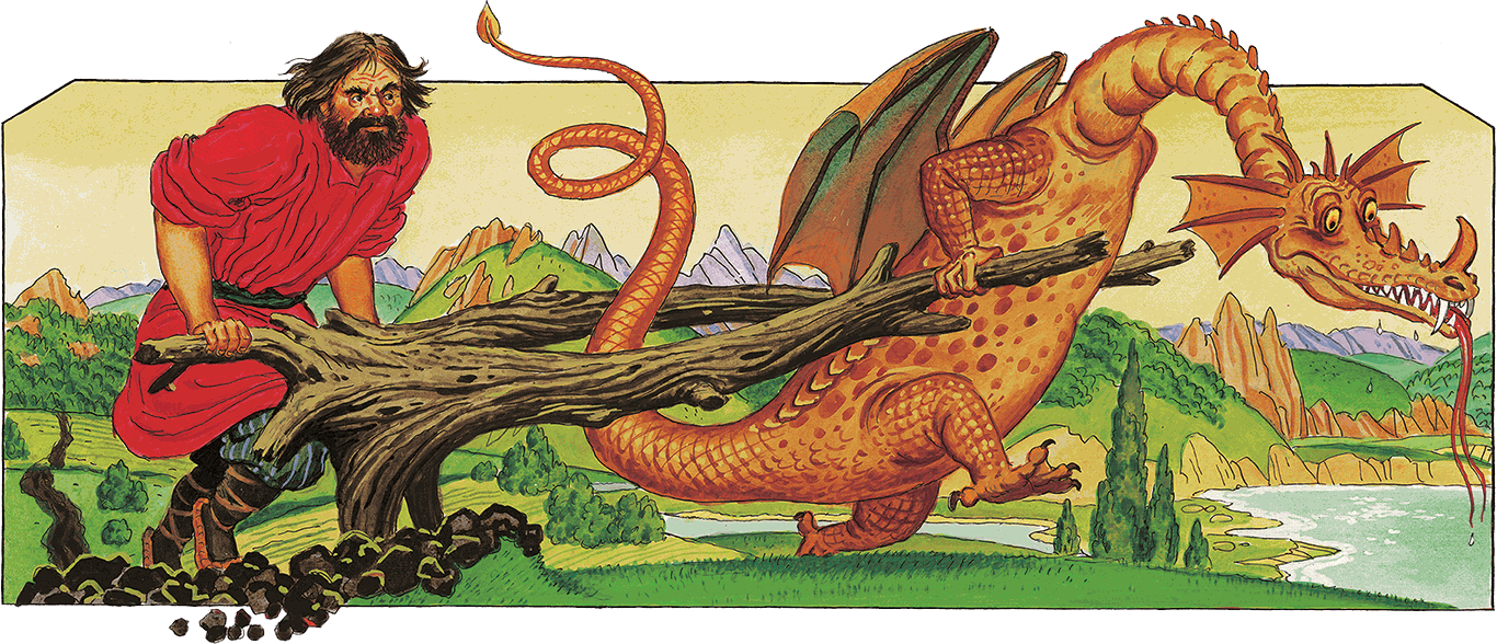 Сделал Никита соху в триста пудов[1], запряг в неё змея и стал от Киева межу прокладывать, борозду пропахивать; глубиной та борозда в две сажени[2] с четвертью. Провёл Никита борозду от Киева до самого Чёрного моря и говорит змею: